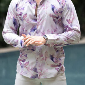 Men’s Casual White Full Sleeve Cotton Italian Strip Crush Shirt