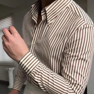 Men’s Casual White-Rust Full Sleeve Cotton Italian Strip Crush Shirt
