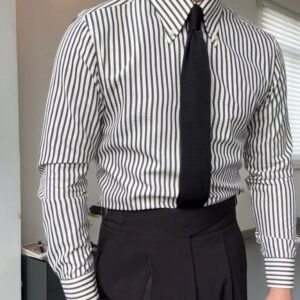 Men’s Casual White-Black Full Sleeve Cotton Italian Strip Crush Shirt