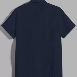 Trending Men’s Classic Opaque Striped Casual Navy Blue Shirt
